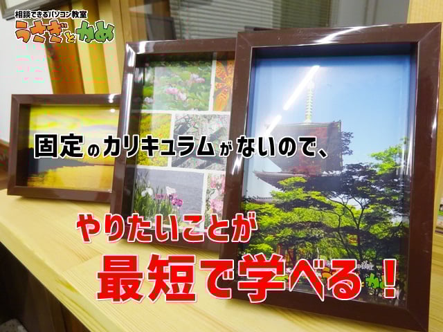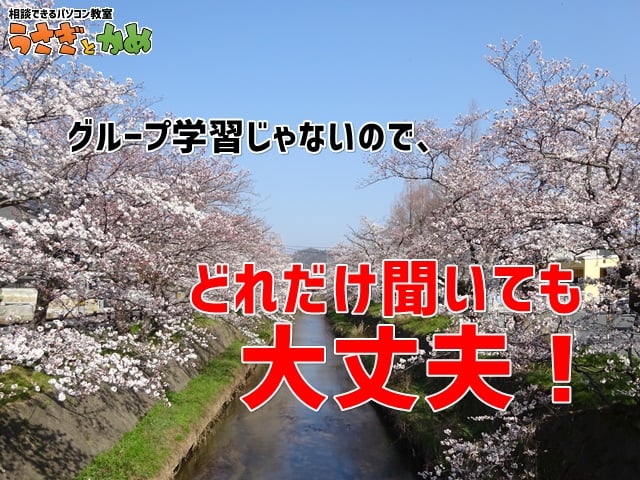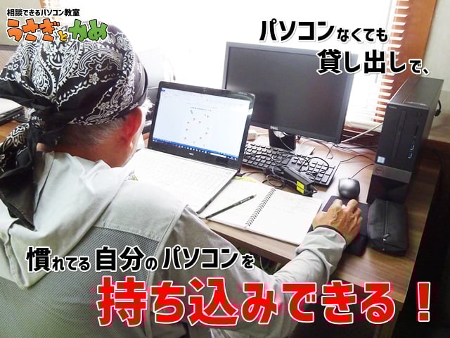 相談できるパソコン教室「うさぎとかめ」は、人に頼らず自分でできるようになりたい、そんな方のための教室です。