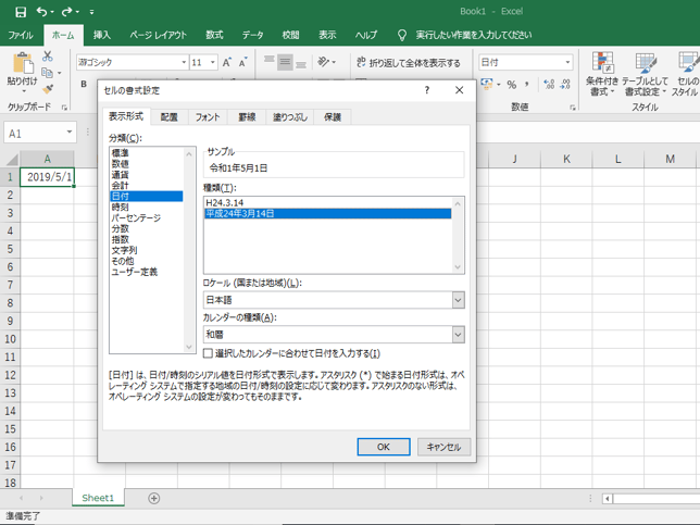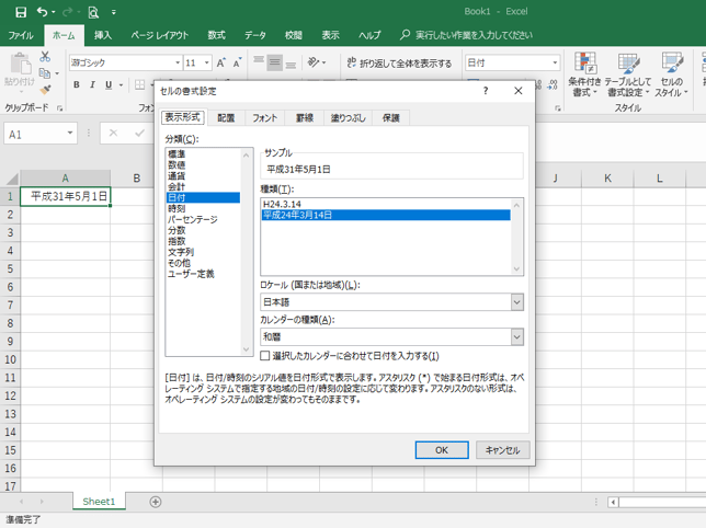 自動的に2019年5月1日以降の日付の和暦表示が令和になります。