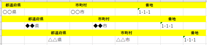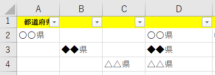 続いて列がバラバラになっている各データを、同じ列に集めます。
