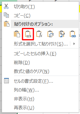 「値として貼り付け」は「貼り付けのオプション」の一つ。