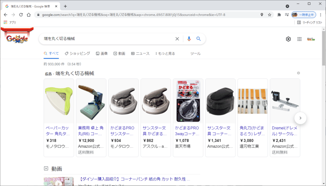 「端を丸く切る機械」とキーワードを入れると、