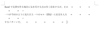 左は非常にきれいに貼り付けられておりこの後書式などを設定する際もスムーズですが、右はセルの数だけタブが入っています。しかも文章の途中で改行されてしまっており、それらを削除する手間が発生してしまいます。